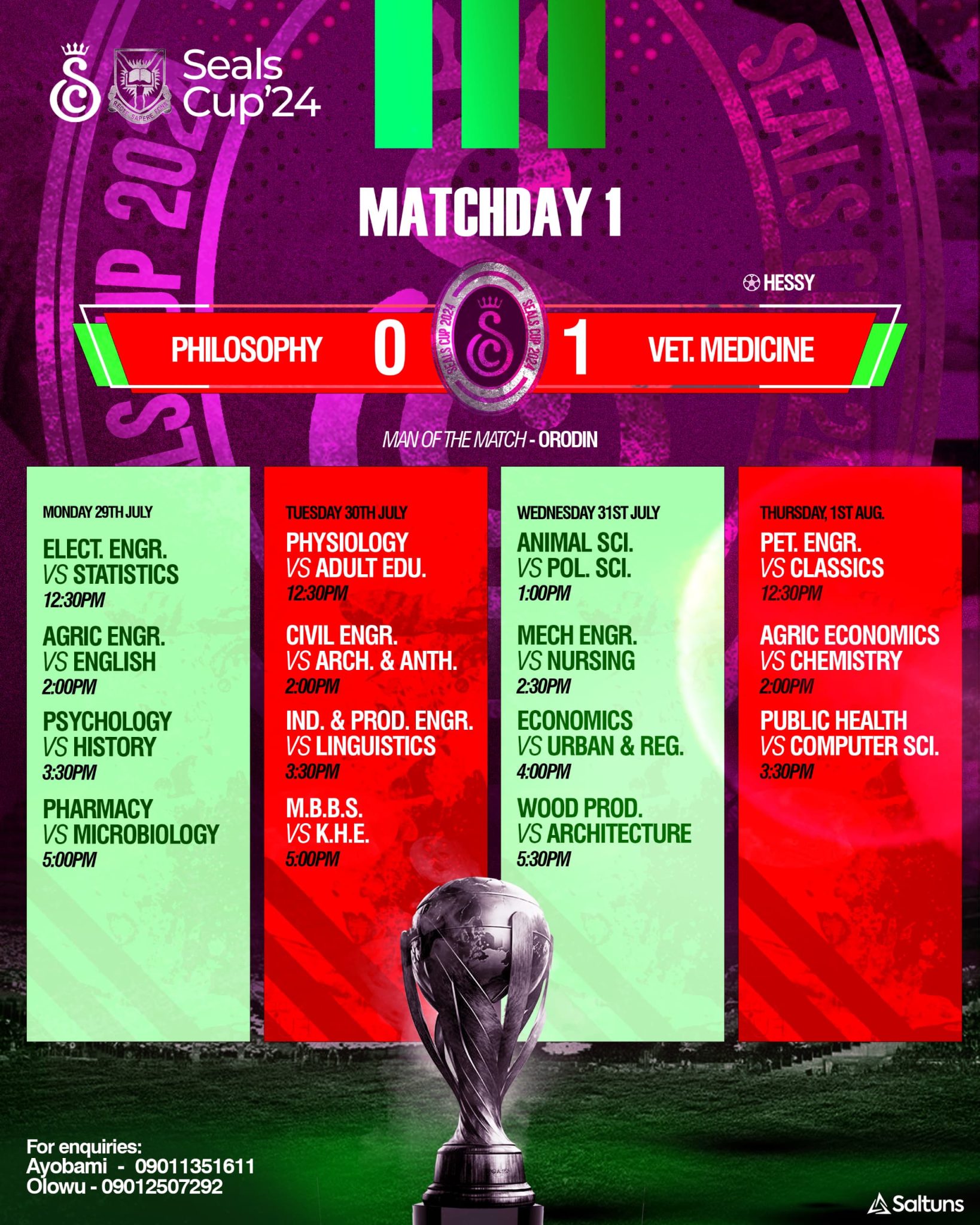 Praise Olorunfemi The much-coveted SEALS Cup, being one of the biggest and sensational sporting events in the University of Ibadan...